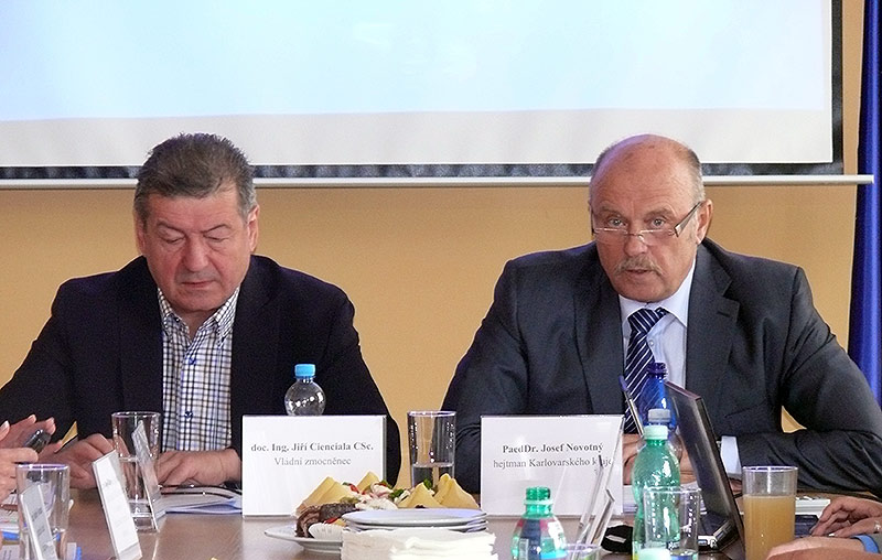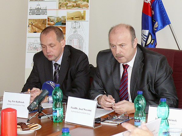 S hejtmanem Karlovarského kraje při tiskové konferenci v Císařských lázních.