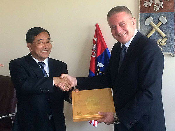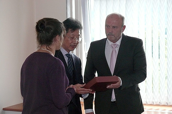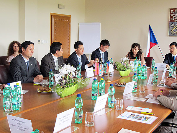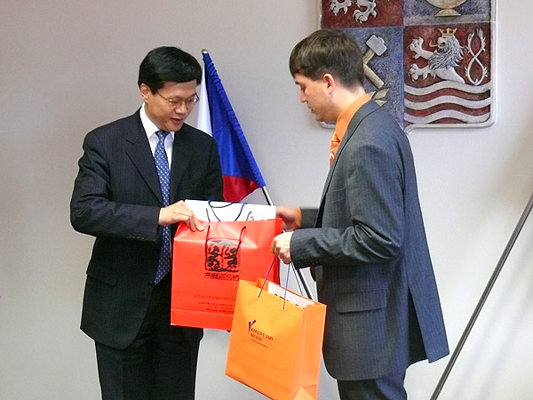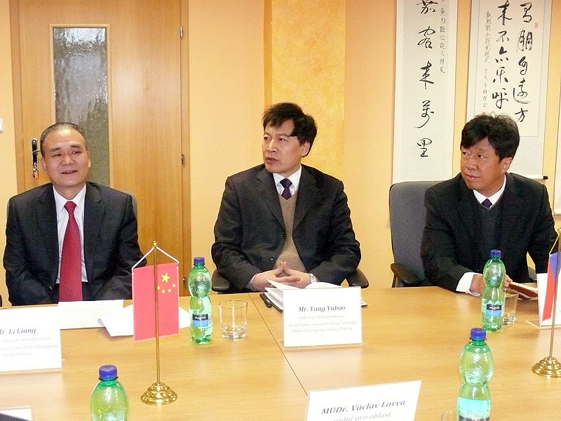 - Návštěva čínské delegace z distriktu Shijingshan vedená guvernérem distriktu panem Zhou Maofei – 27.10.2009 při předání daru s náměstkem hejtmana Petrem Navrátilem