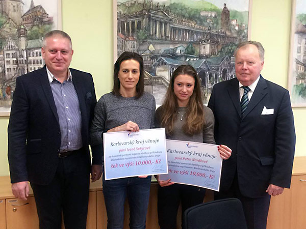 - Hejtman Karlovarskéhokraje Martin Havel dnes spolu s radním pro oblast školství, mládeže a tělovýchovy Edmundem Janischem předali šeky na 10 tisíc korun běžkyni Ivaně Sekyrové a lyžařce Petře Novákové. Dne 13.1.2016.