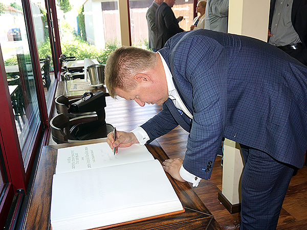 Ministr dopravy České republiky pan Aleš Řebíček při podepisování kroniky Karlovarského kraje - Velvyslanec Francouzské republiky pan Charles Fries - 2.7.2007