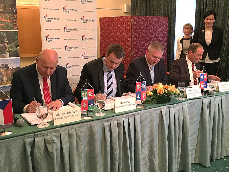 - Pan hejtman přivítal saského ministra vnitra Markuse Ulbiga, pana hejtmana Libereckého kraje Martina Půtu a pana hejtmana Ústeckého kraje Oldřicha Bubeníčka v rámci slavnostního podpisu Smlouvy o přeshraniční spolupráci zdravotnických záchranných služeb. Dne 25. 11. 2015.