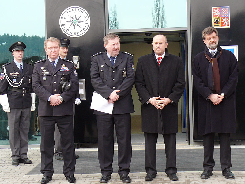 - Ředitel letiště Václav Černý, ministr Cyril Svoboda, hejtman Josef Novotný a náměstek hejtmana Petr Navrátil (zleva) na návštěvě Letiště Karlovy Vary