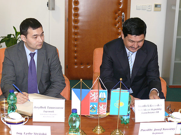 Velvyslanec Kazašské republiky Sharip Omarov a akim kazašského regionu Akmola Esenbajev Mazhit Touleubeckovich při jednání s hejtmanem Josefem Pavlem, 1. náměstkem hejtmana Janem Zborníkem a členem Rady KK Lubošem Orálkem - Delegace z Pekingu vedená paní Jin Hui, zástupkyní města - 5. - 6. 9. 2006