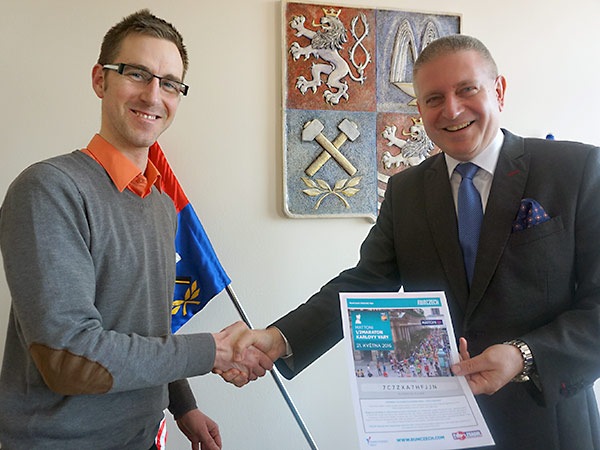 - Pan hejtman Karlovarského kraje poblahopřál výhercům běžecké soutěže o registrace na Mattoni 1/2 Maraton Karlovy Vary. Dne 14.3.2016.