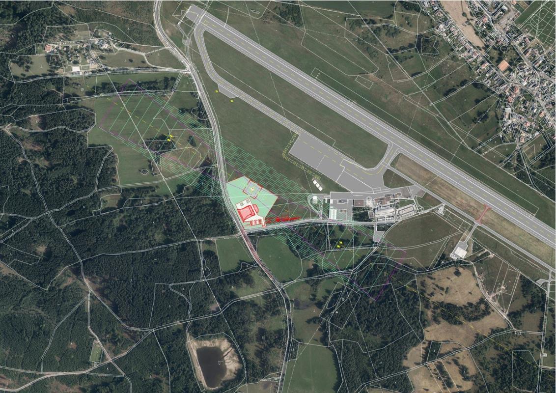 - Prověřit realizovatelné možnosti umístění základny tak, aby zvolené lokality splňovaly základní předpoklady provozovatele základny, ale zároveň byl provoz základny v souladu s limity plynoucími z provozu letiště, mezinárodně platnou legislativou, zejména s leteckými předpisy, byl zajištěn ideálně nezávislý provoz základny a letiště, včetně minimalizace vlivu na další rozvoj letiště dle výhledových studií jeho provozovatele.